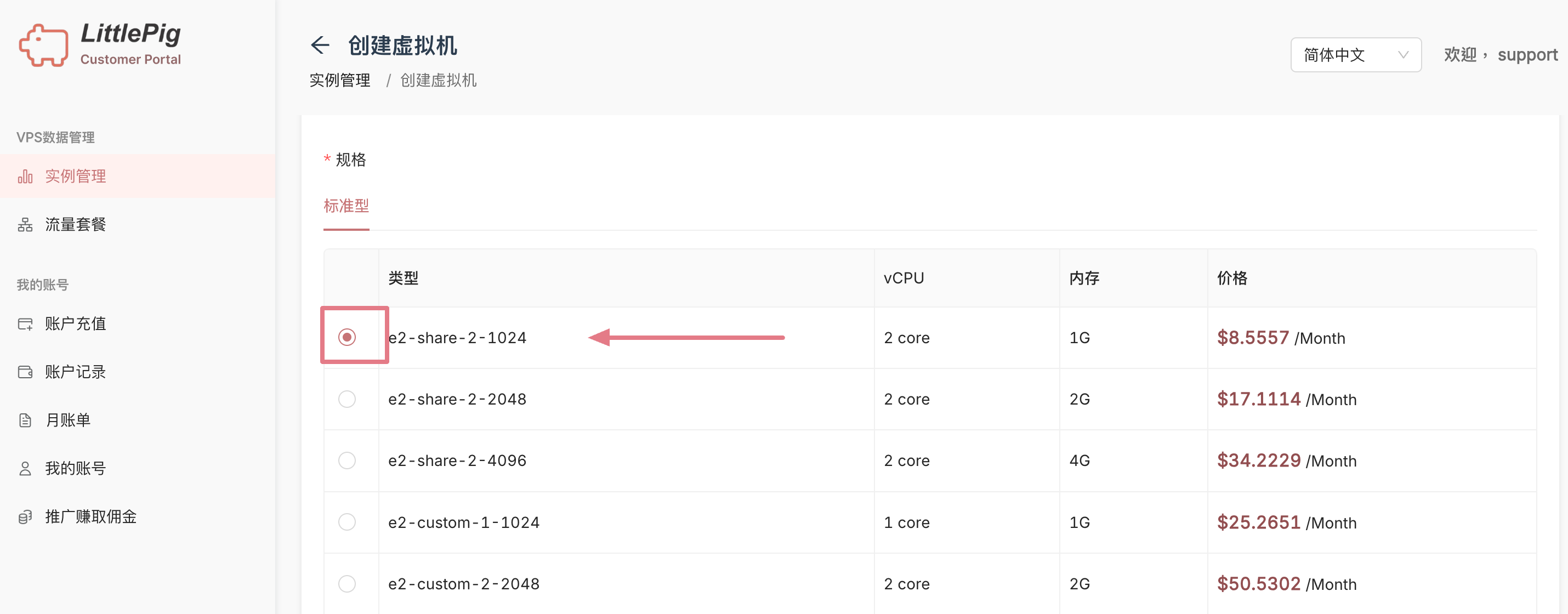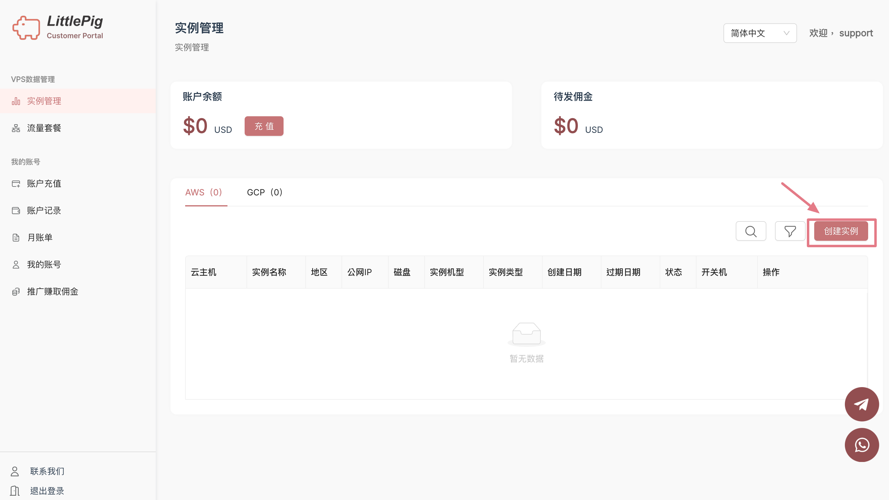 [登入](https://vps.littlepig.tech/login)您的小豬科技帳戶。從側邊欄進入“伺服器管理”頁面，點擊“創建伺服器”按鈕。