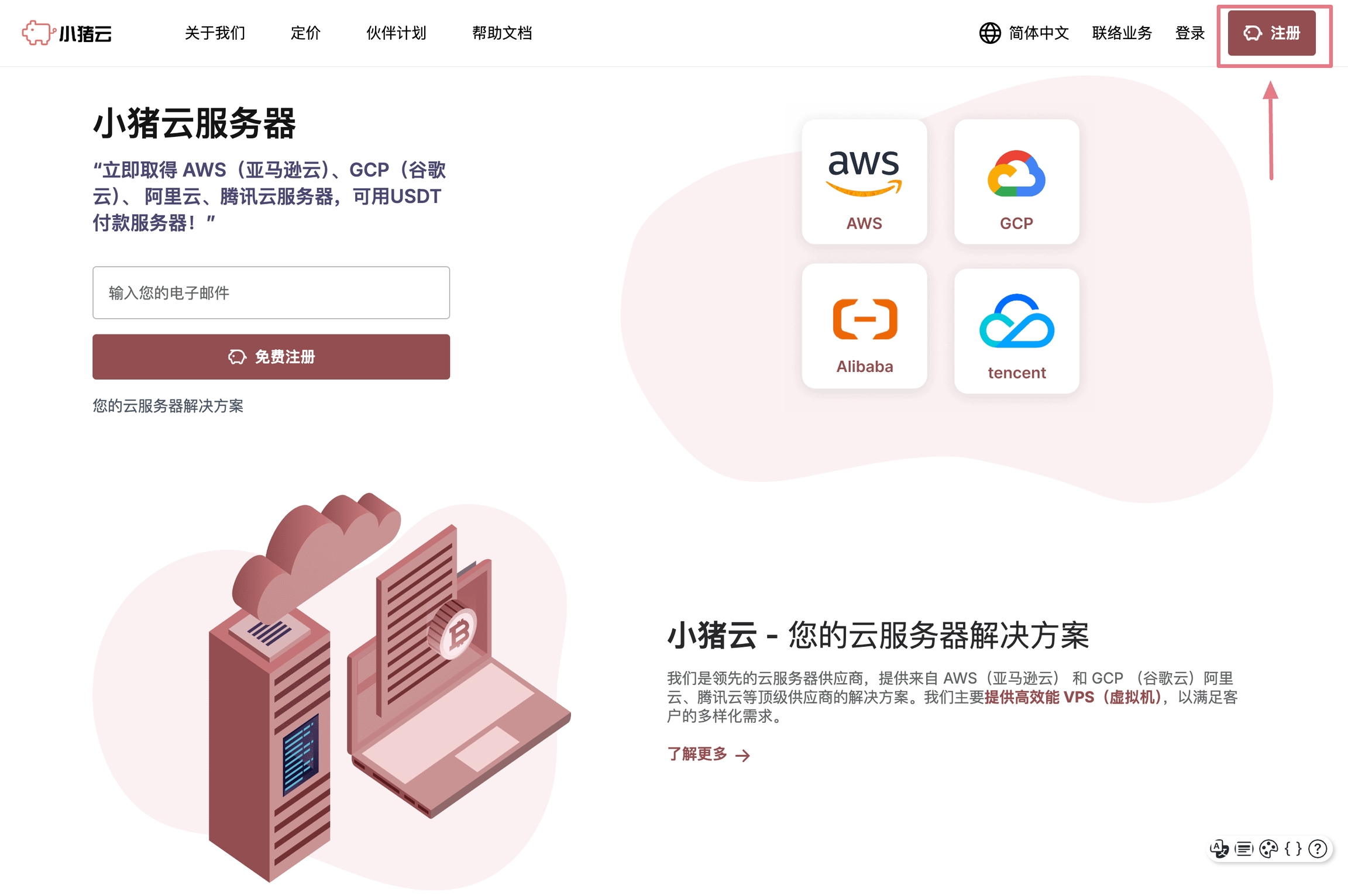 進入小豬科技首頁,點擊“註冊”按鈕。